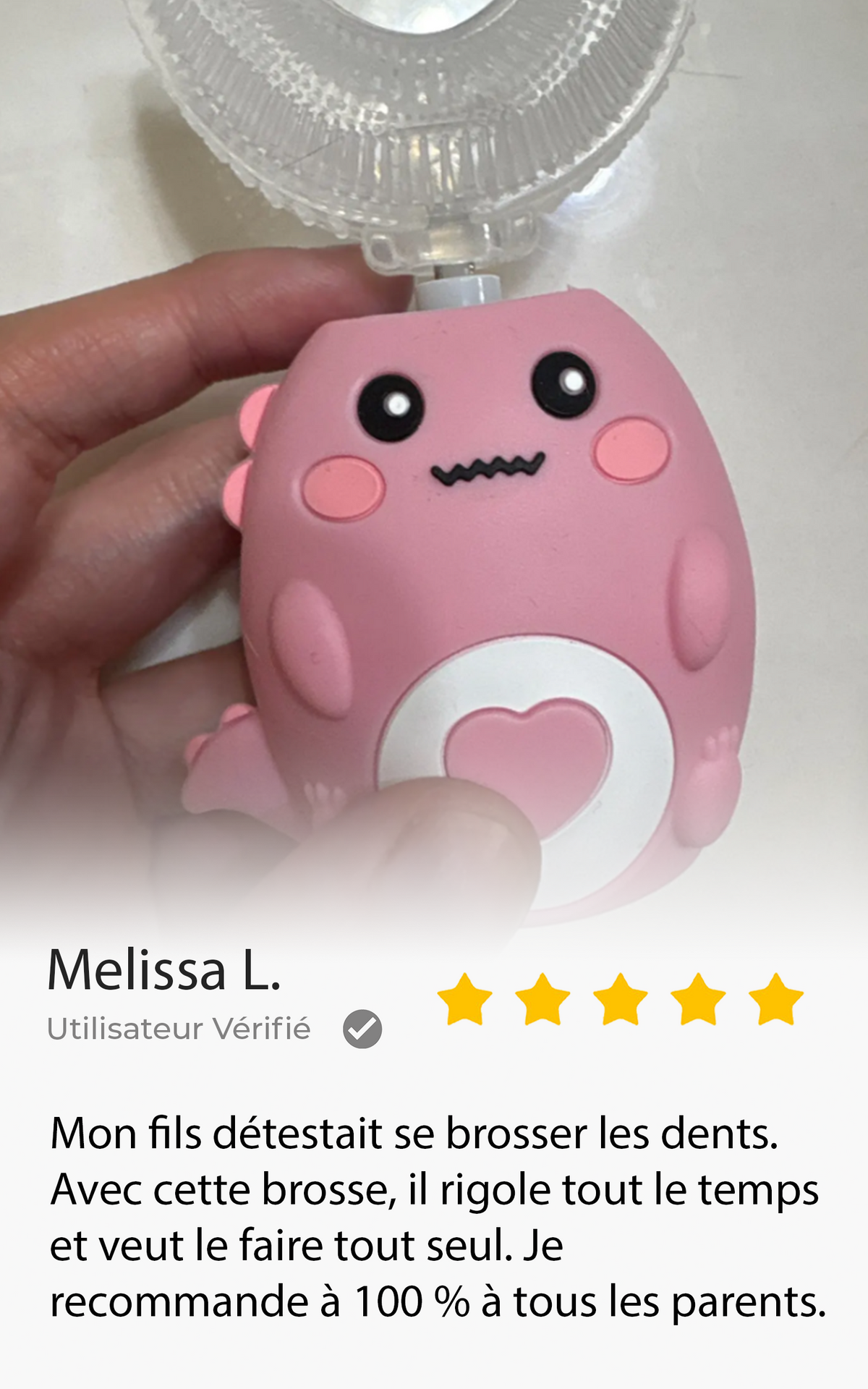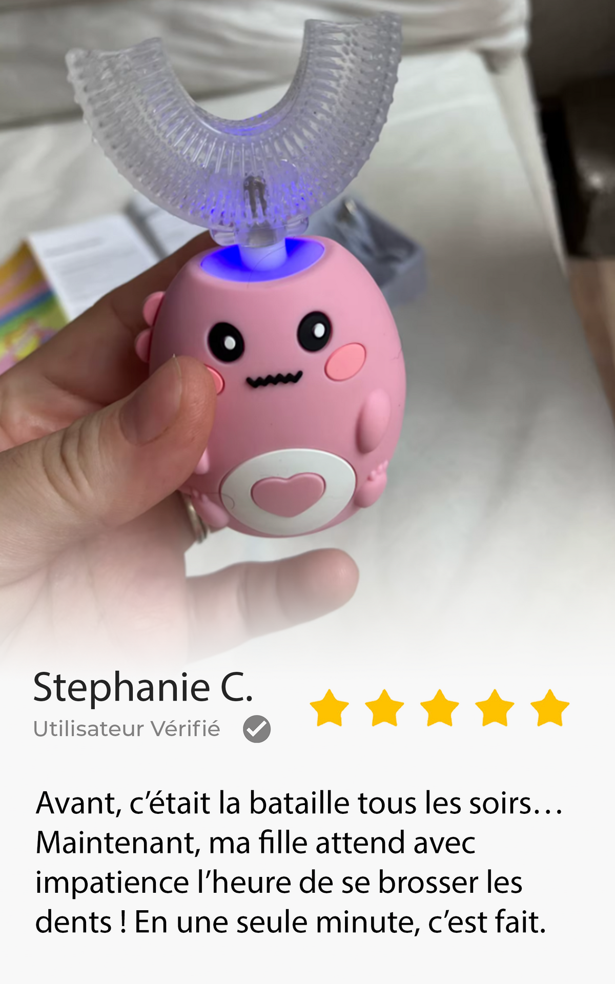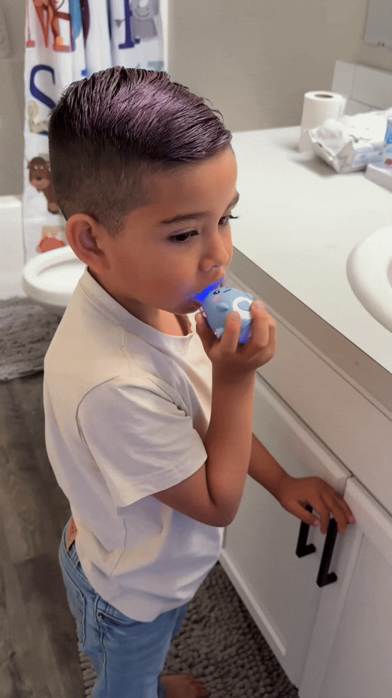 Oui ! C’est précisément pour ça qu’elle a été conçue. Son design ludique, ses couleurs amusantes et son utilisation rapide transforment le brossage en moment de jeu. Les enfants demandent eux-mêmes à se brosser les dents.
