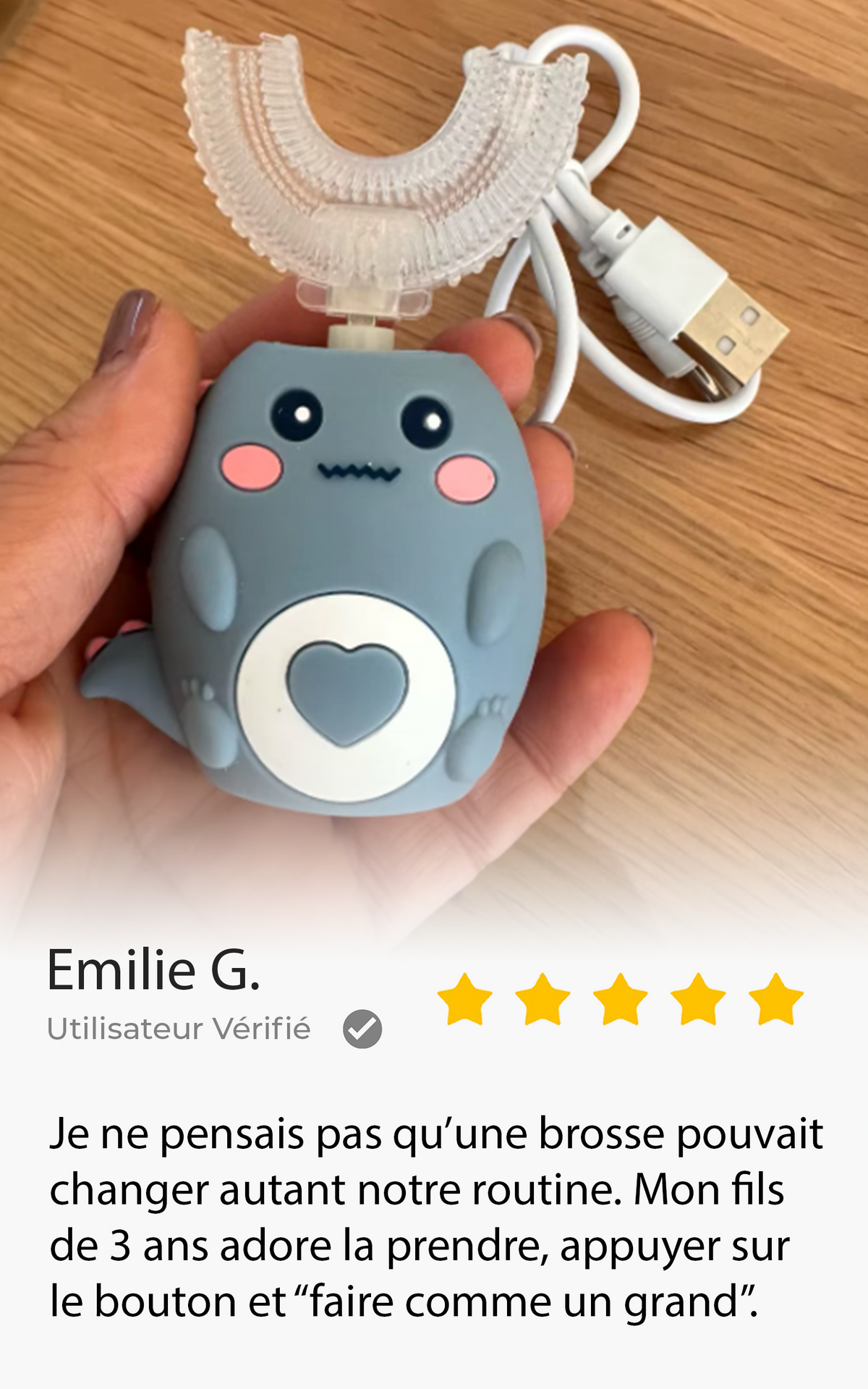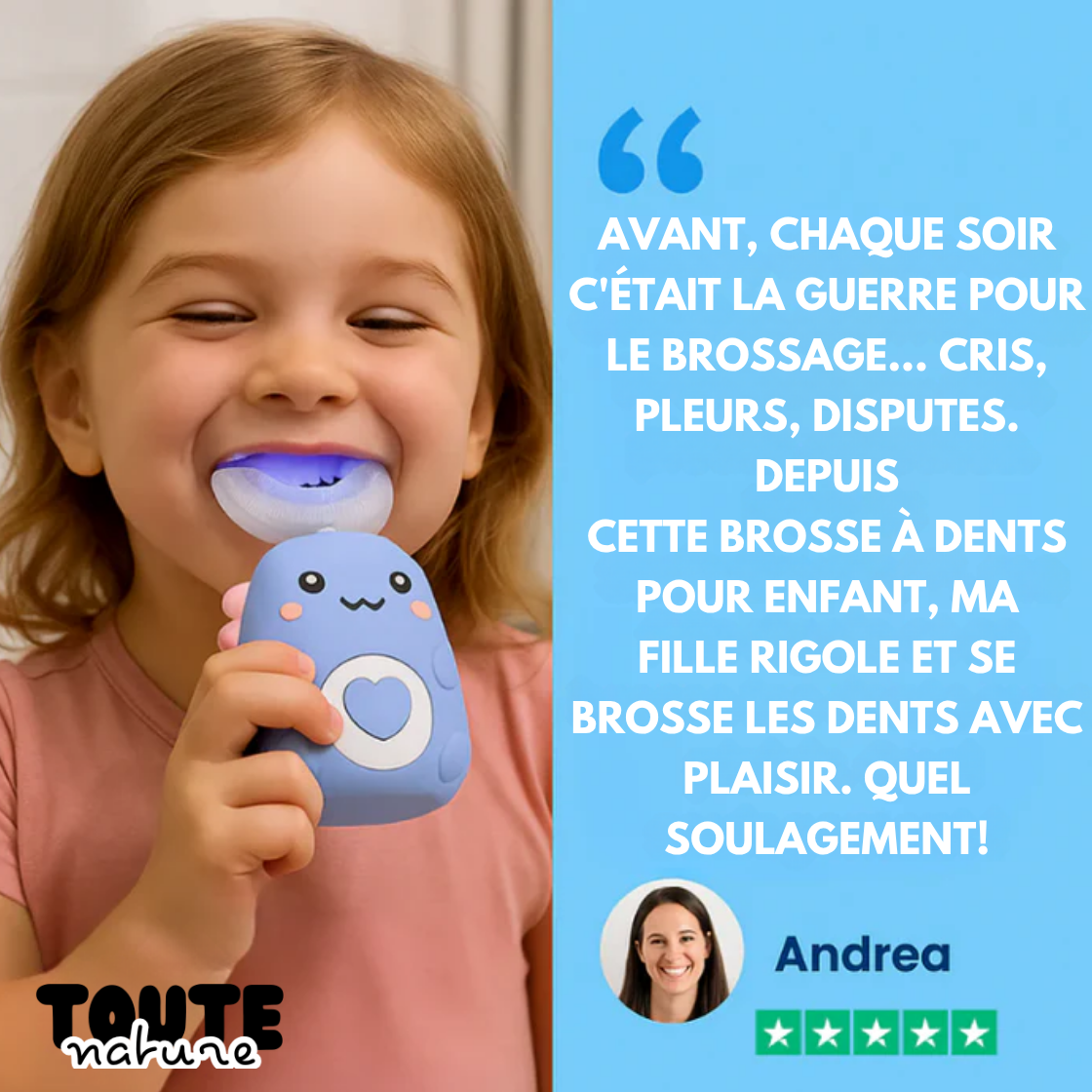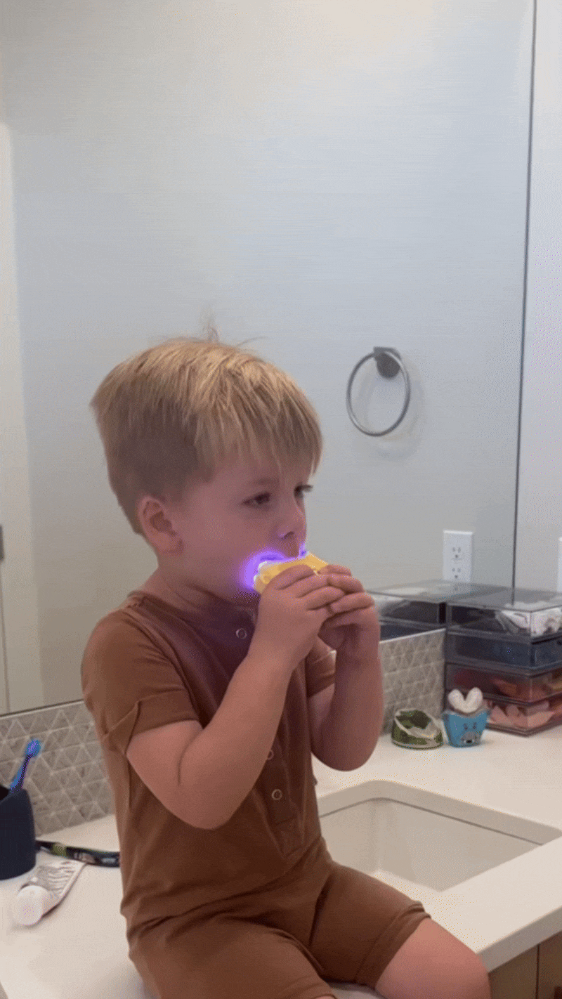 Oui ! C’est précisément pour ça qu’elle a été conçue. Son design ludique, ses couleurs amusantes et son utilisation rapide transforment le brossage en moment de jeu. Les enfants demandent eux-mêmes à se brosser les dents.