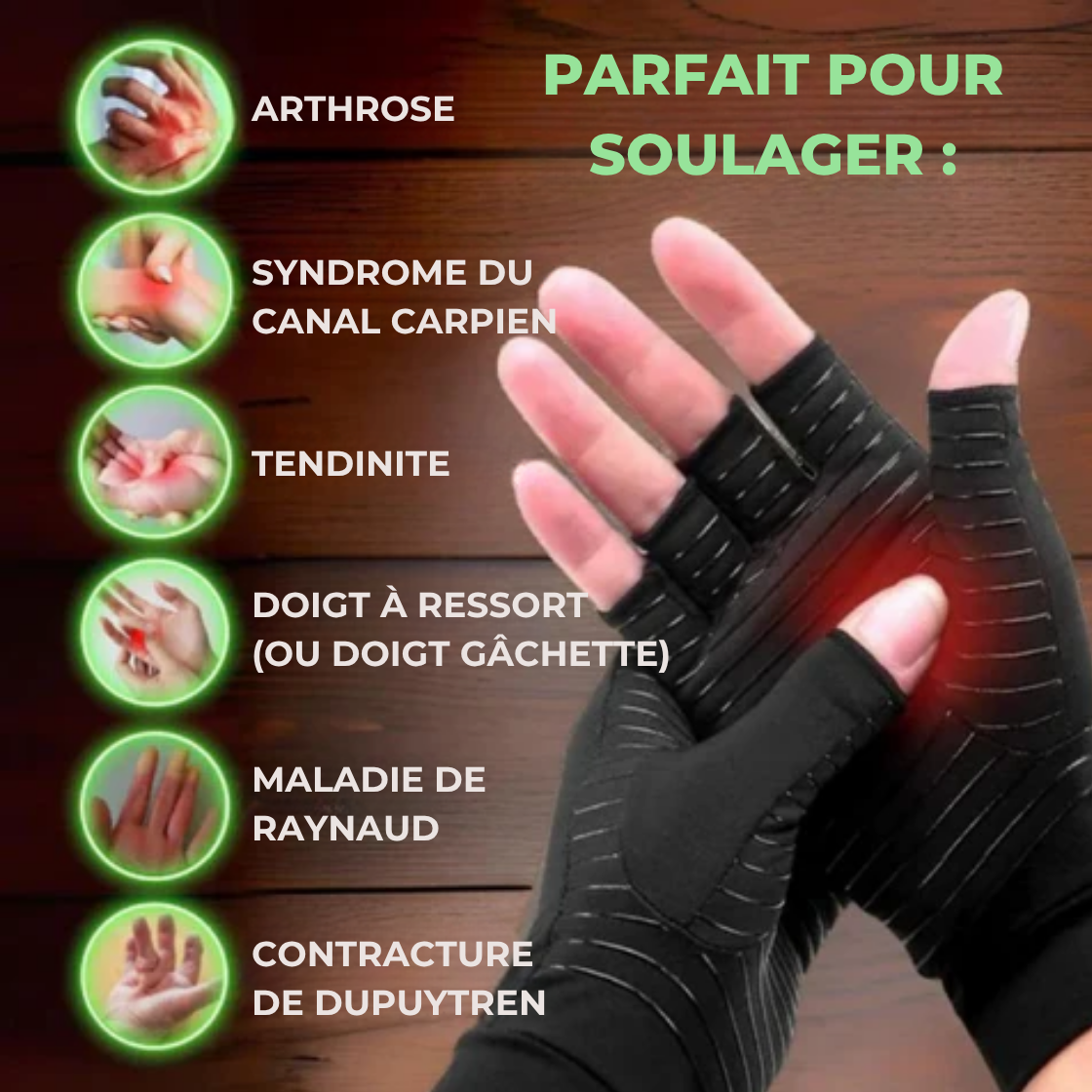 Les gants ont été développés pour soulager les affections courantes de la main telles que l’arthrose, le syndrome du canal carpien, la tendinite, la surutilisation et la raideur.