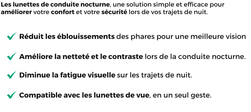 En améliorant le contraste, les lunettes permettent de mieux voir la nuit tout en réduisant la fatigue oculaire et les maux de tête liés à l’éblouissement.