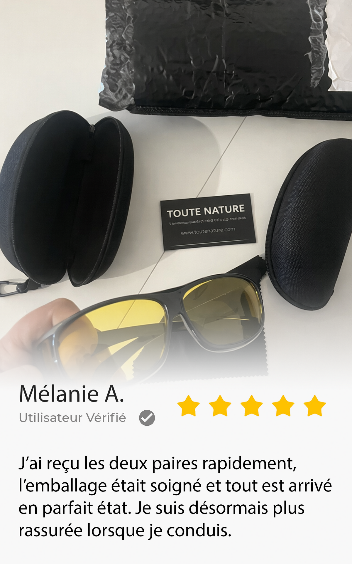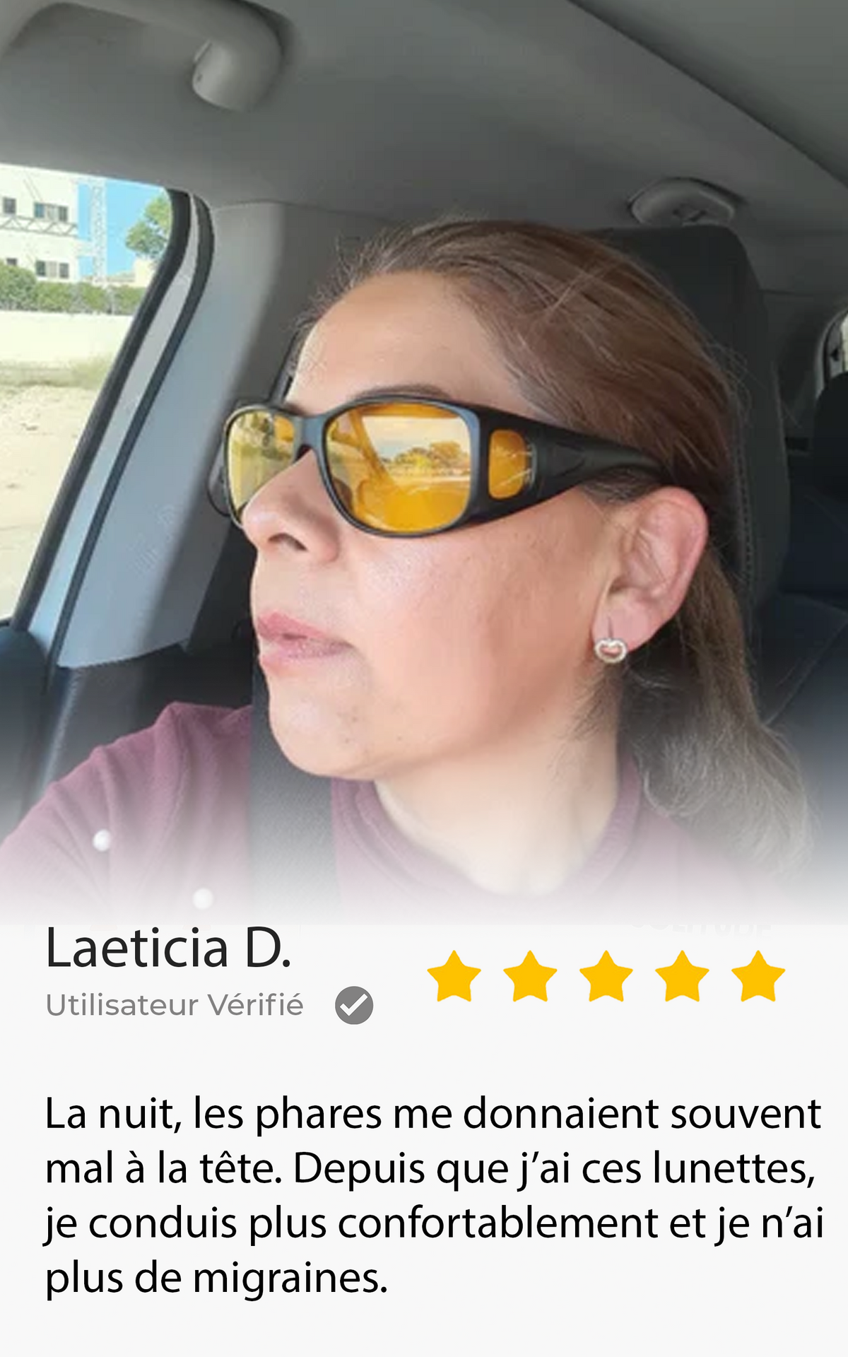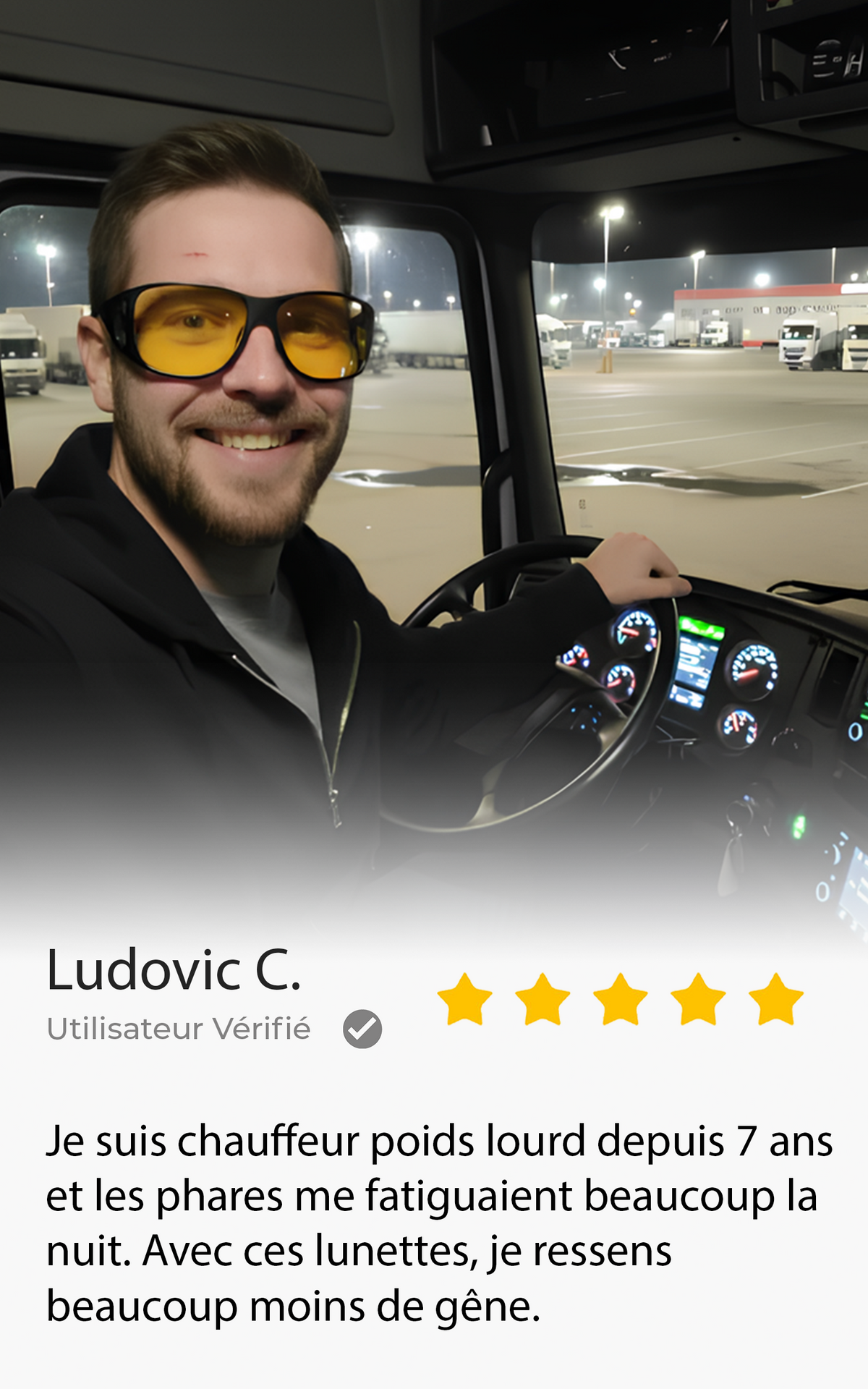 Je conduis souvent le soir et les phares en face me fatiguaient vite. Avec ces lunettes, l’éblouissement est beaucoup plus supportable et je me sens plus à l’aise sur la route.