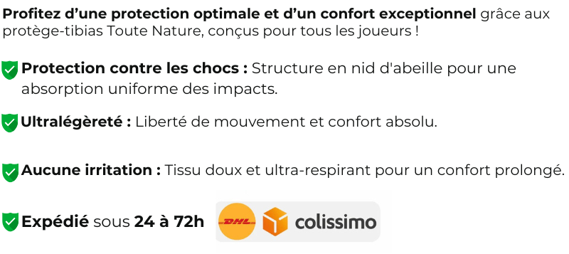 Absolument. Grâce à leur design ergonomique et à leurs matériaux légers, les protège-tibias Toute Nature conviennent parfaitement aux jeunes joueurs comme aux adultes. De nombreux parents les choisissent pour offrir à leurs enfants une protection fiable et confortable.