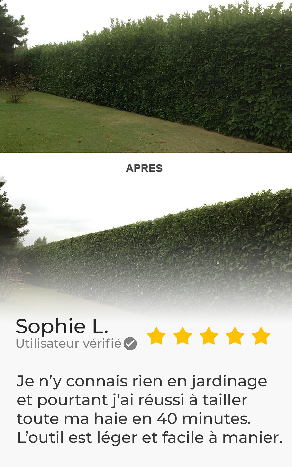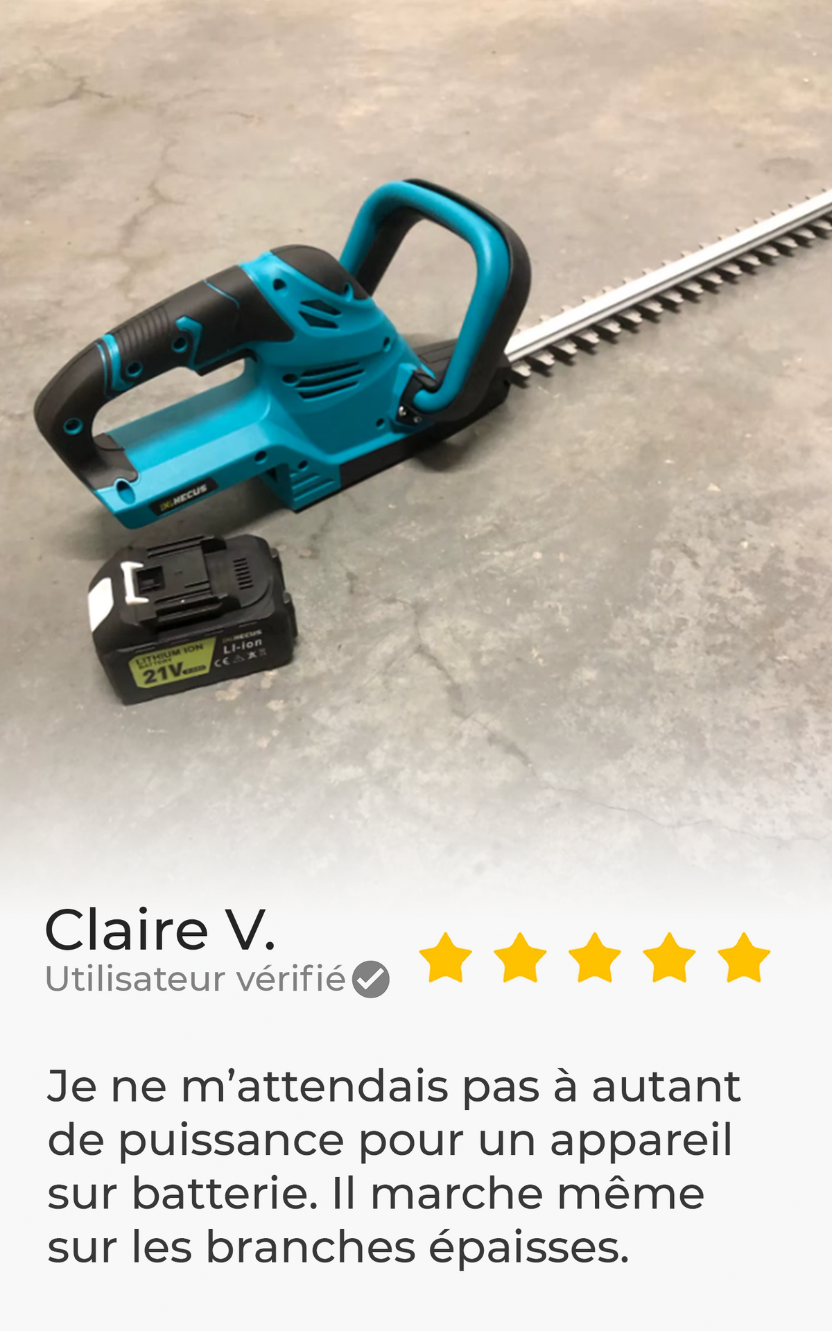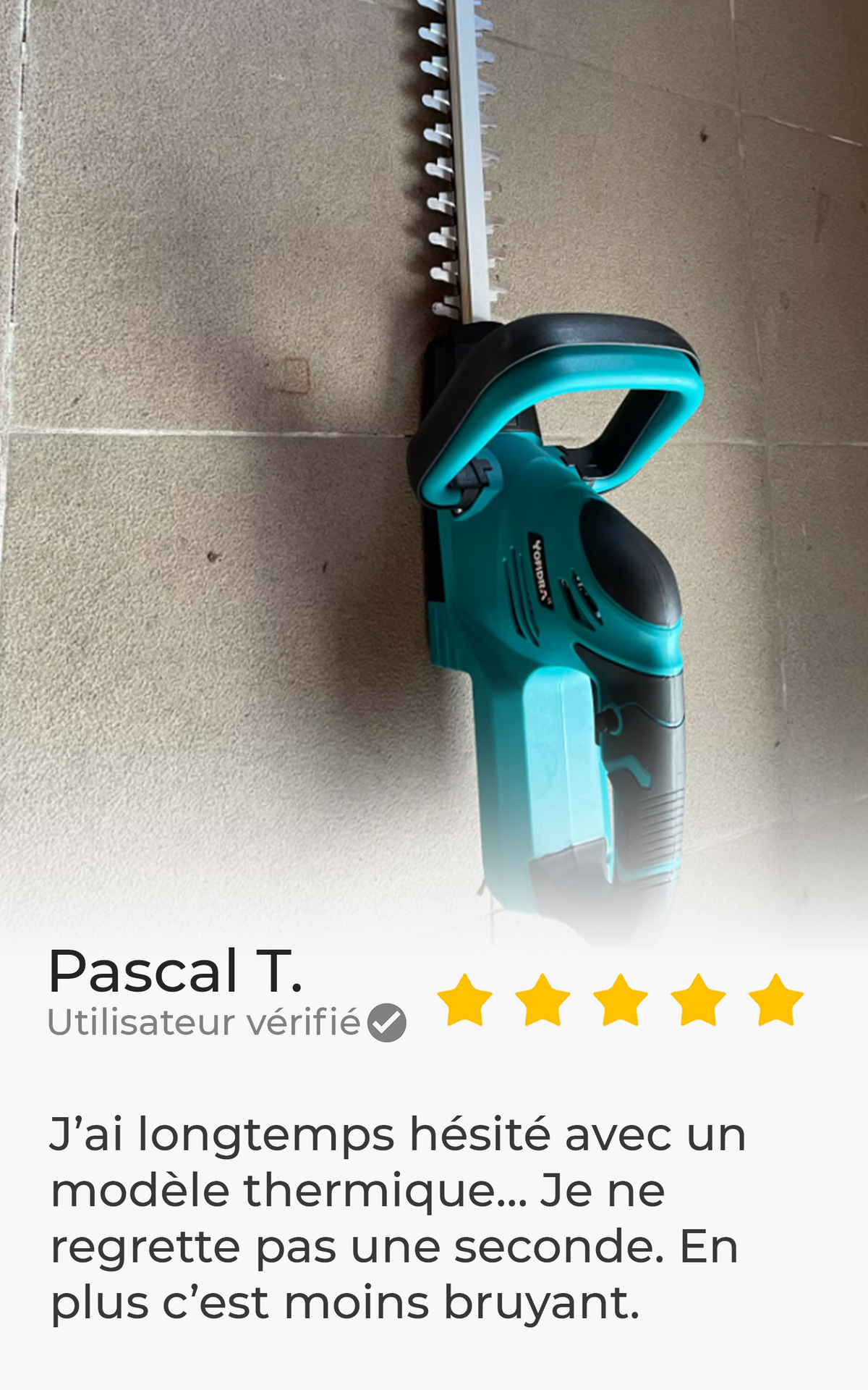 Oui, le moteur brushless offre une puissance constanteet les lames en acier trempé peuvent couper des branches jusqu’à 16 mm. C’est largement suffisant pour les haies les plus courantes (laurier, thuya, charme…).