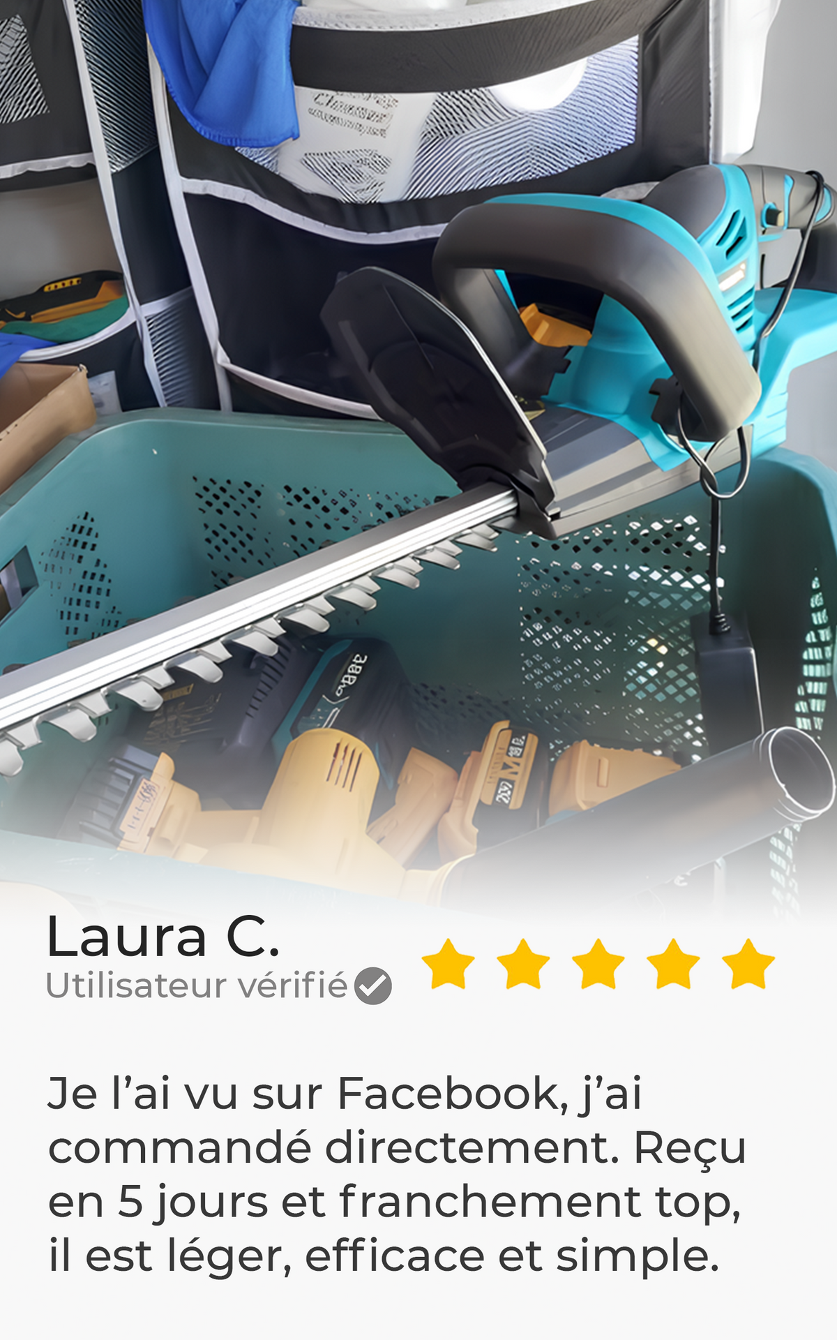 Il suffit d’insérer la batterie, d’appuyer sur le bouton de sécurité, et c’est parti ! Aucun câble, aucune configuration : le taille-haie est prêt à l’emploi en moins de 60 secondes. Même si vous débutez, vous profitez d’un outil simple, rapide et instinctif. Pas besoin d’être bricoleur pour avoir un jardin net.