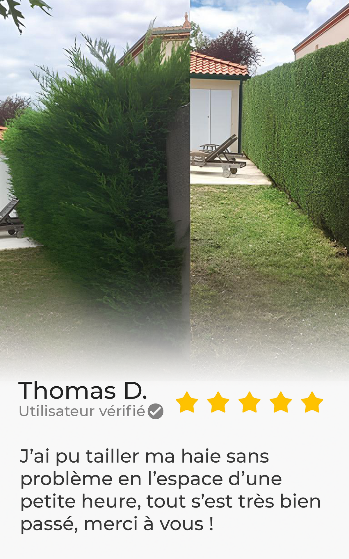 Coupe rapide et propre sur tous types de haies (laurier, thuya, etc.).